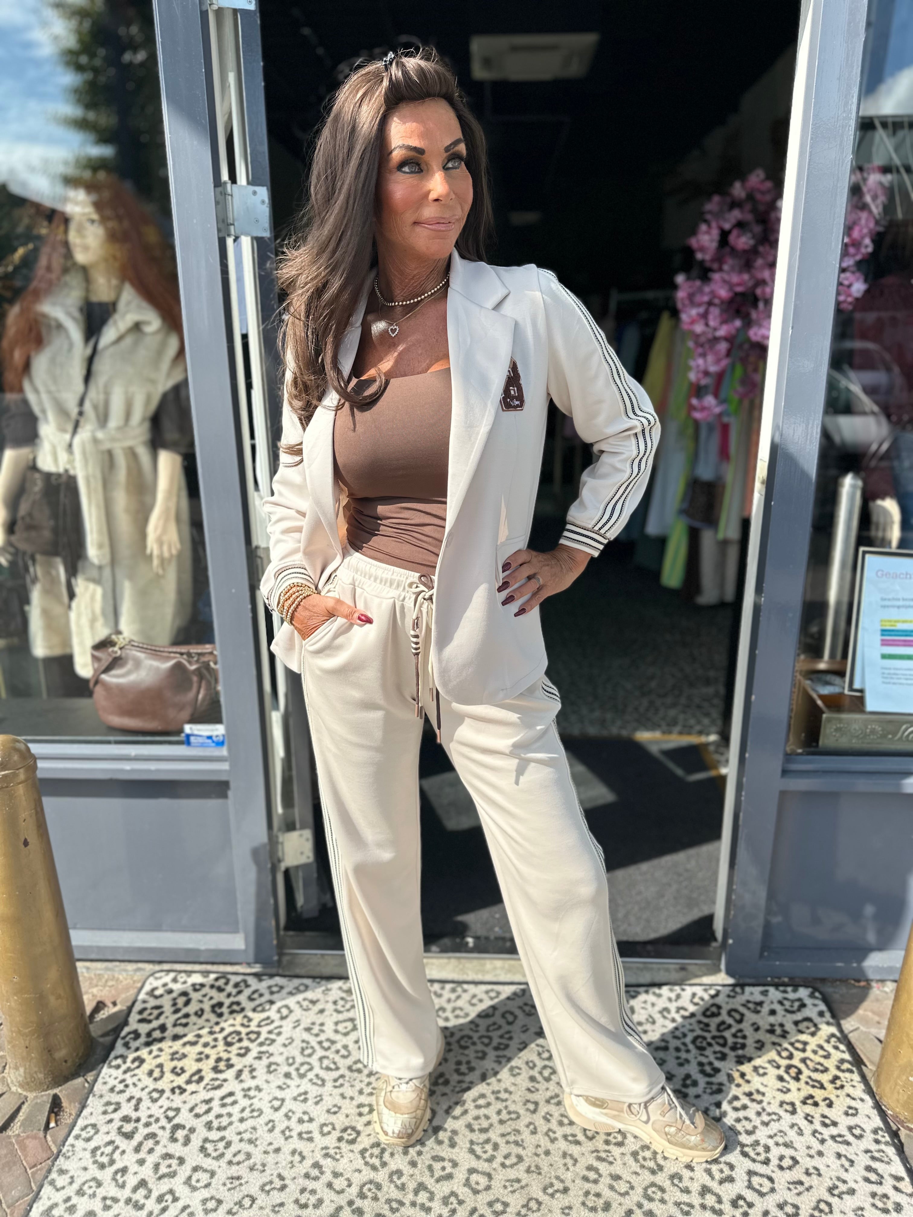 Ontdek onze stijlvolle 2-delige set, bestaande uit een elegant jasje en een bijpassende broek. Deze set verenigt comfort en modieus design, ideaal voor elke gelegenheid. Het hoogwaardige materiaal zorgt voor een aangenaam draaggevoel, terwijl de tijdloze kleurstelling veelzijdige combinatiemogelijkheden biedt. Perfect voor de dagelijkse gang van zaken of speciale gelegenheden – met deze set bent u altijd goed gekleed!