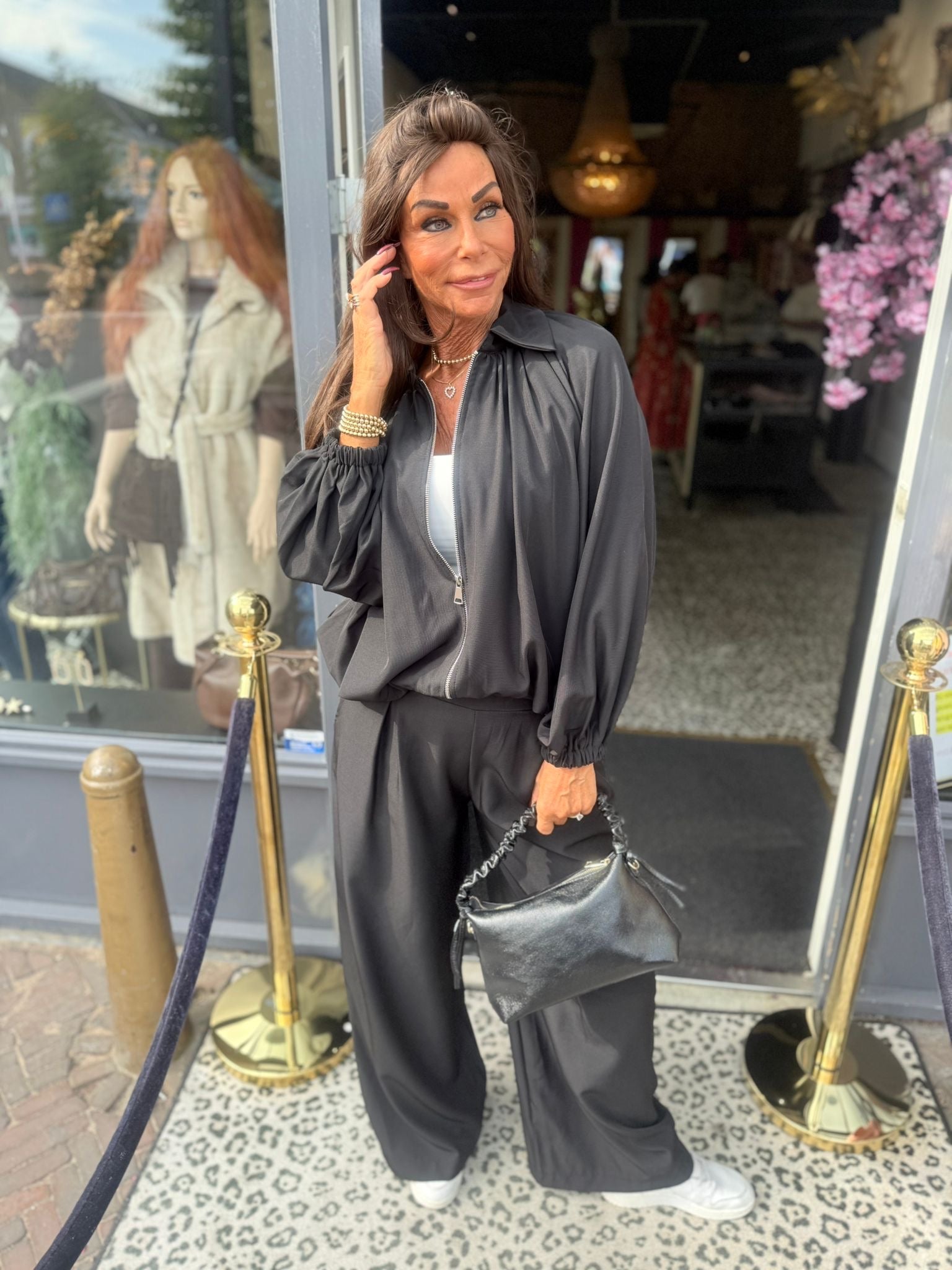 Verhoog je garderobe met deze chique 2-delige set, bestaande uit een stijlvolle cardigan met pofmouwen en op...
