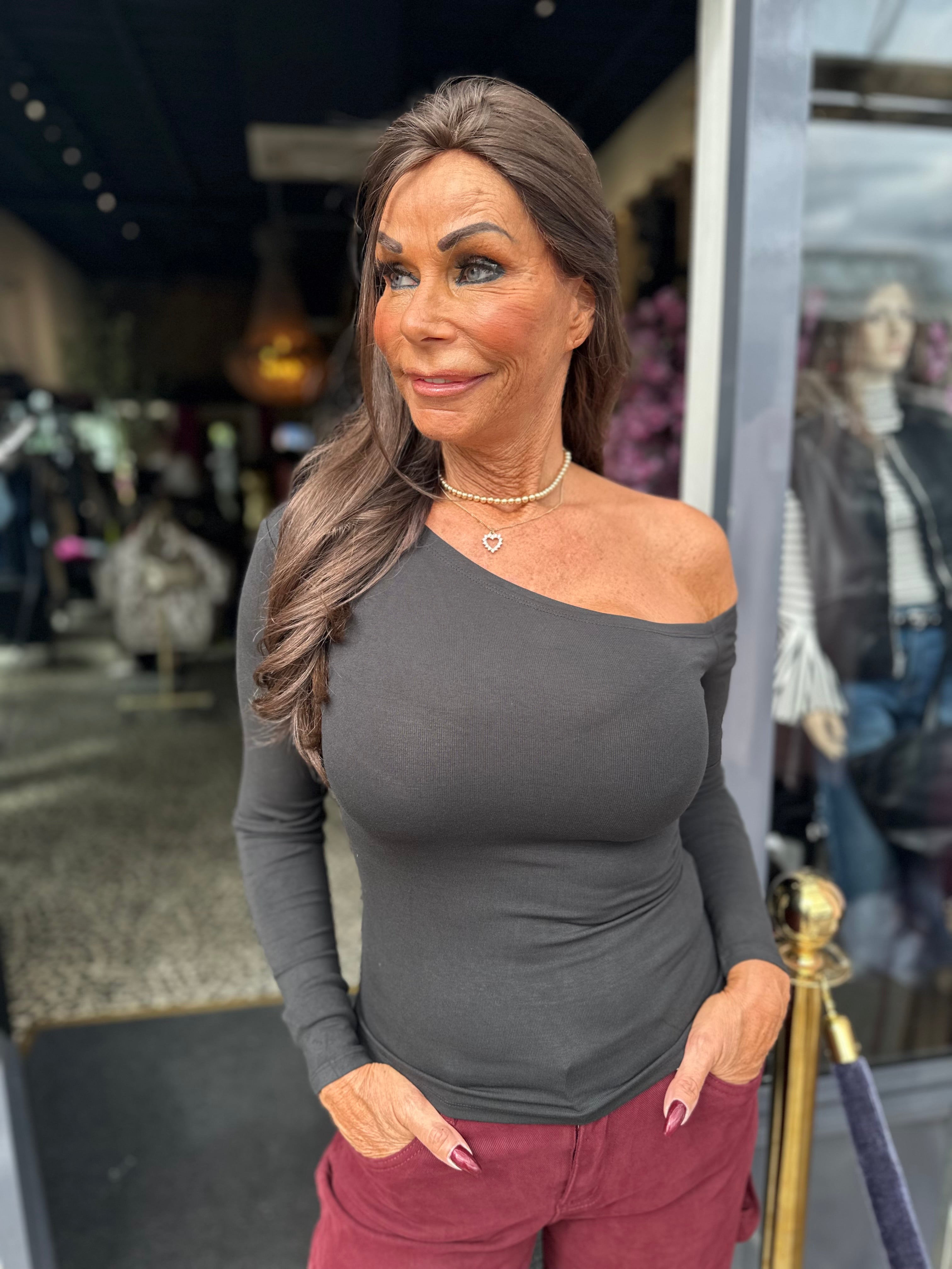 Deze top met een schuine hals is perfect voor elke gelegenheid. Mooi Off Shoulder