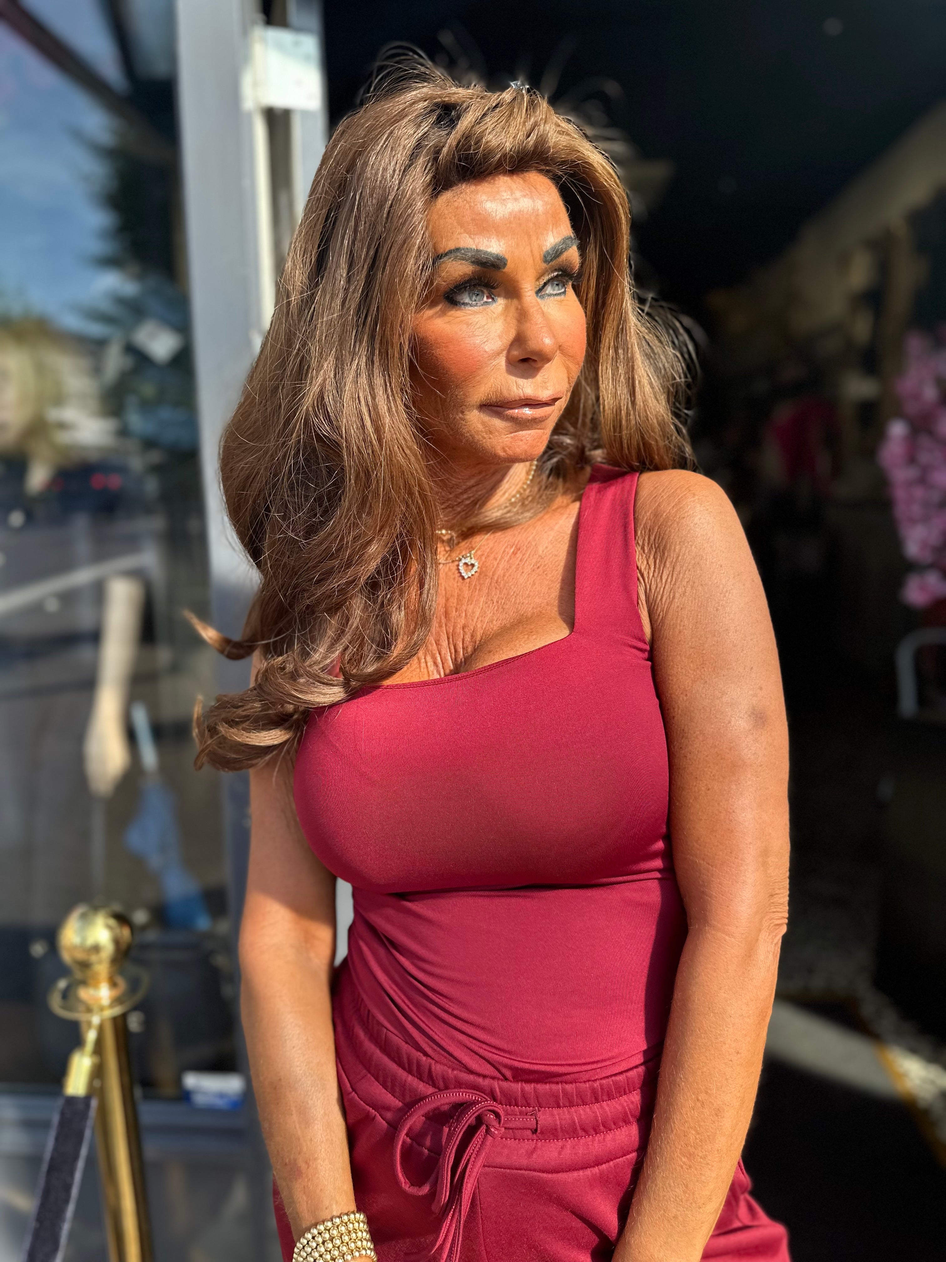 Waanzinnig T-shirt, mouwloos strak model in het bordeaux