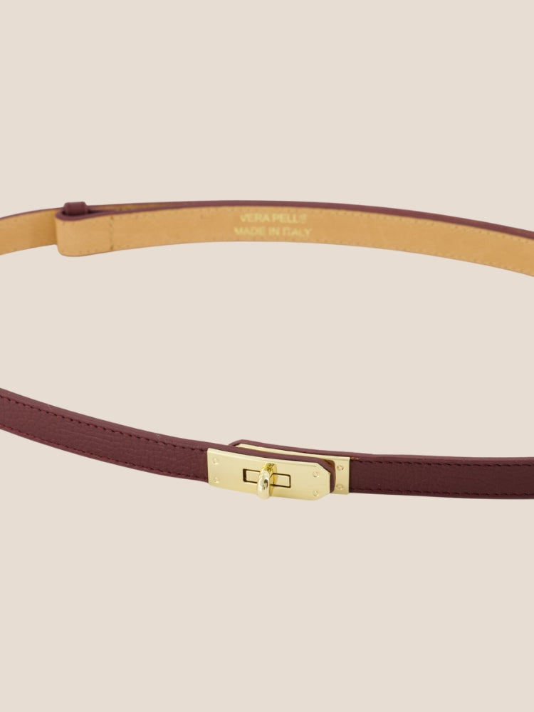 De Garcia Wikkelriemin de kleur Bordeaux combineert stijl en functionaliteit in een tijdloos ontwerp. Deze riem is gemaakt van hoogwaardig echt leer met een afgewerkt met een elegante goudkleurige draaisluiting. Dankzij het slimme schuifsysteem is de riem volledig verstelbaar, waardoor hij comfortabel op elke gewenste maat gedragen kan worden. Perfect voor zowel casual als zakelijke outfits en ideaal om een vleugje luxe toe te voegen aan elke look.