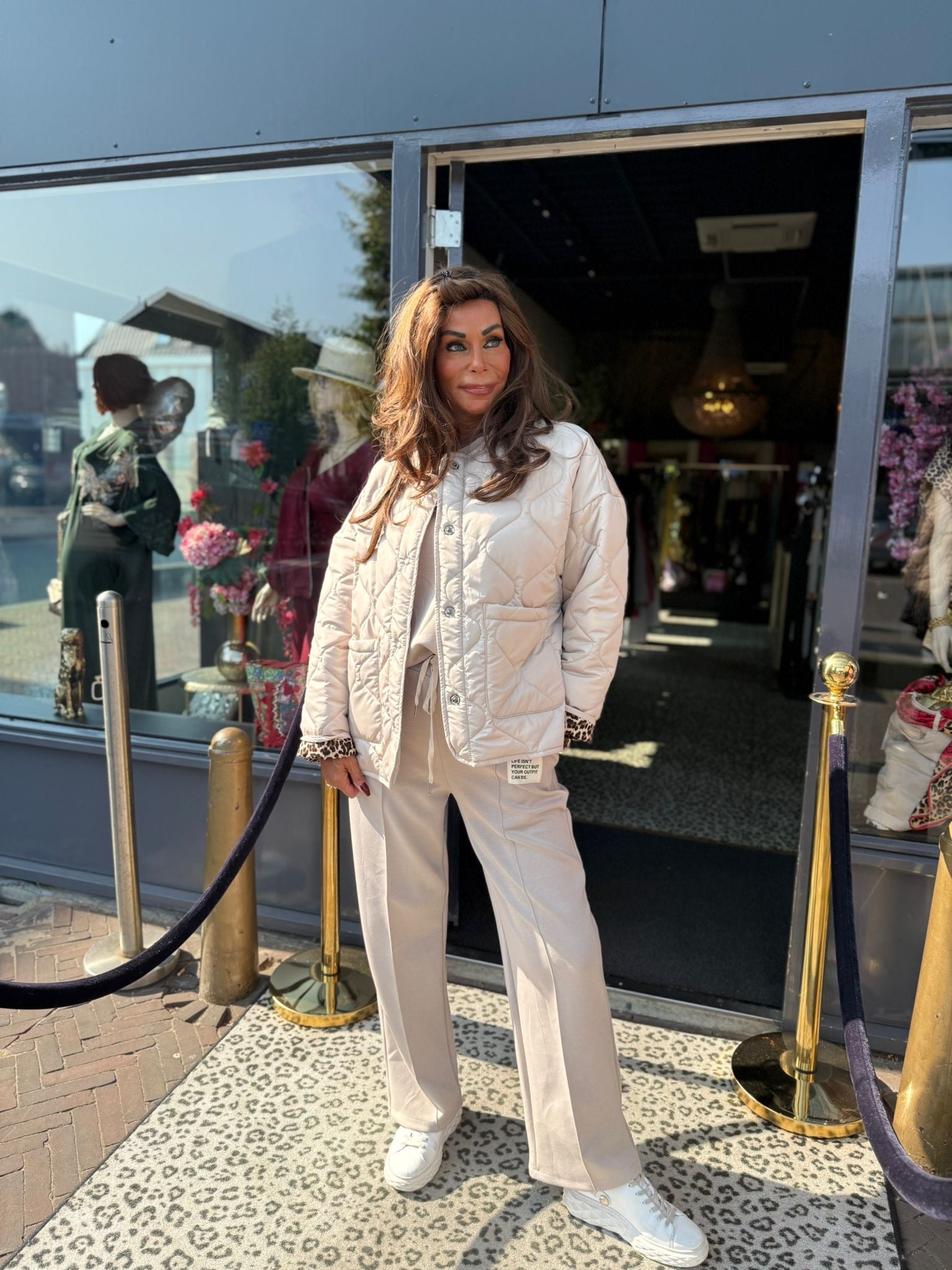 Gewatteerd jasje "Enjoy life" Beige/panter reversible