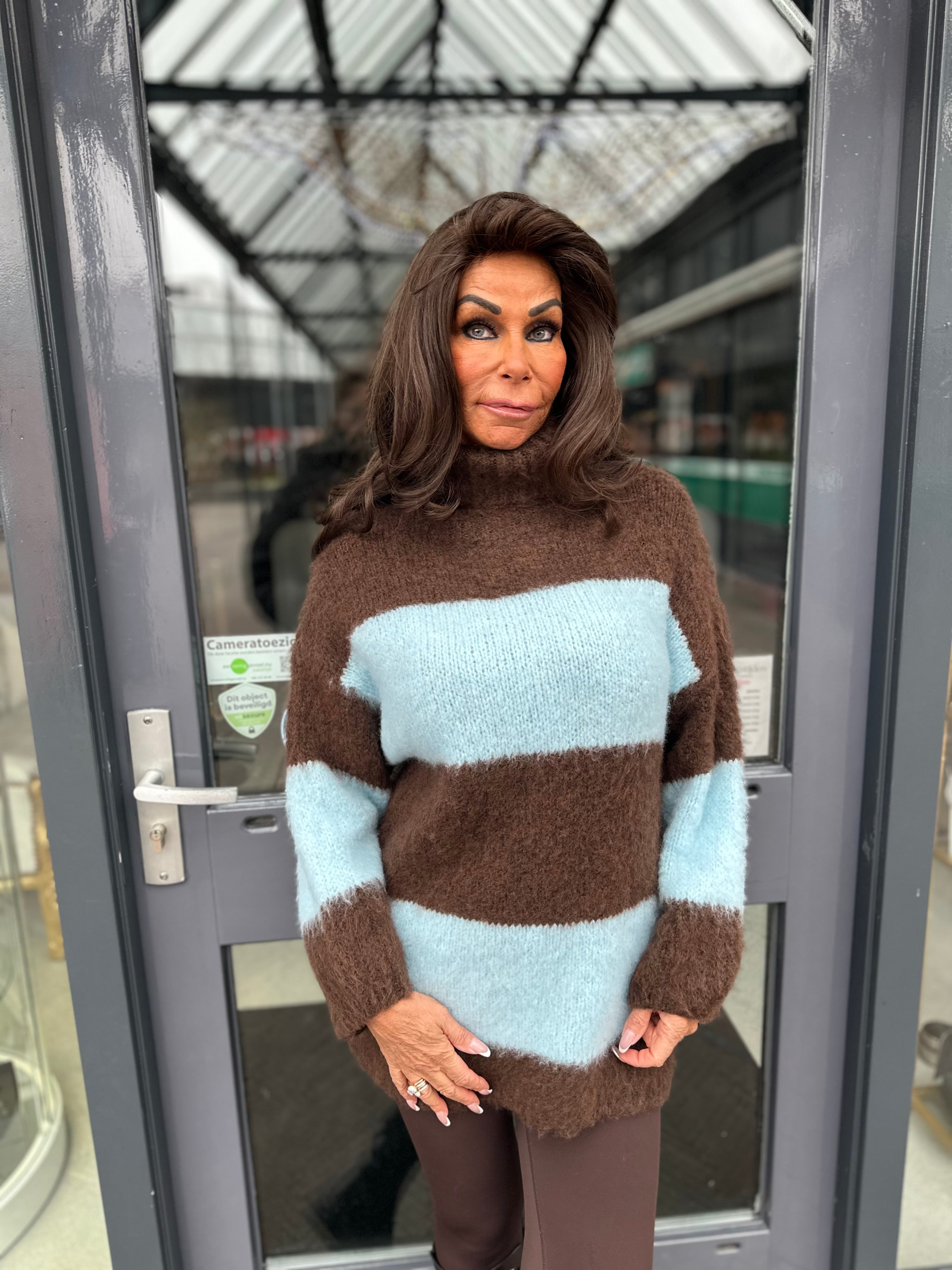Lange Koltrui "Gestreept en zacht" Donkerbruin/Blauw