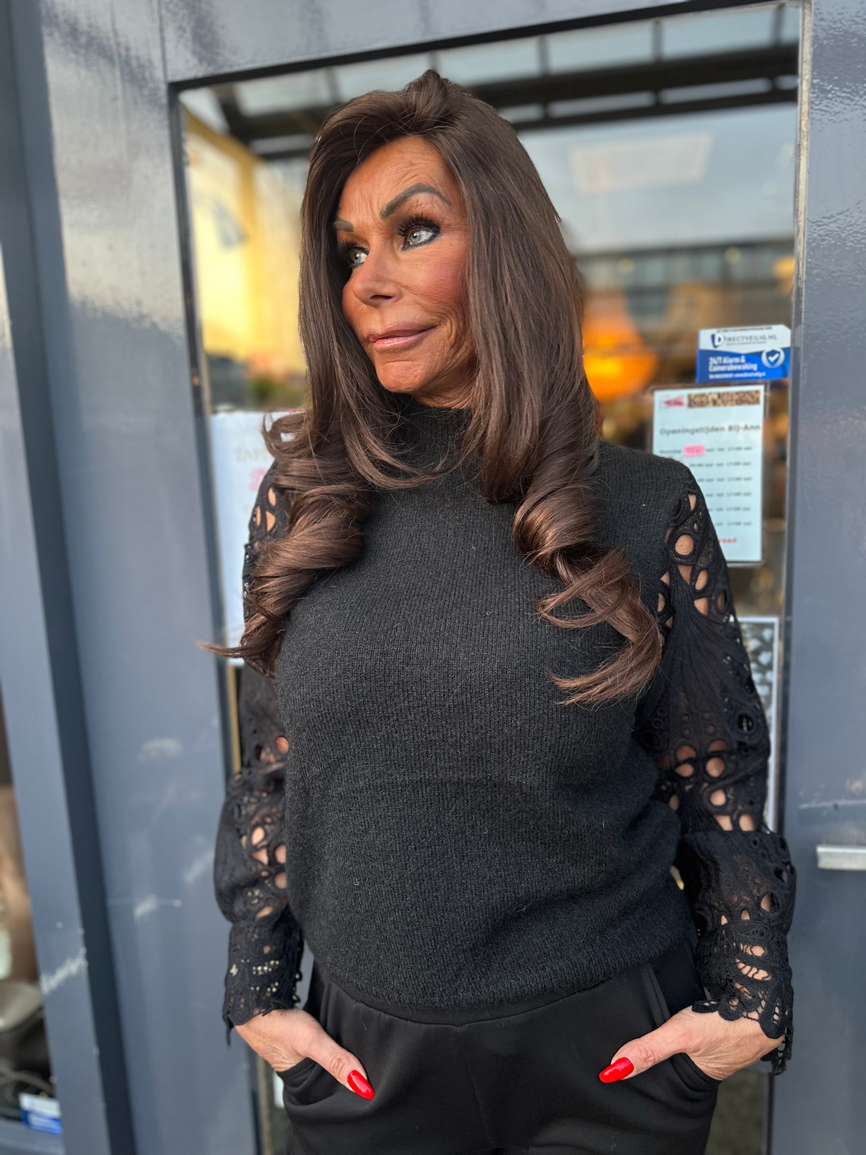 trui kanten mouw "Robyn" Zwart