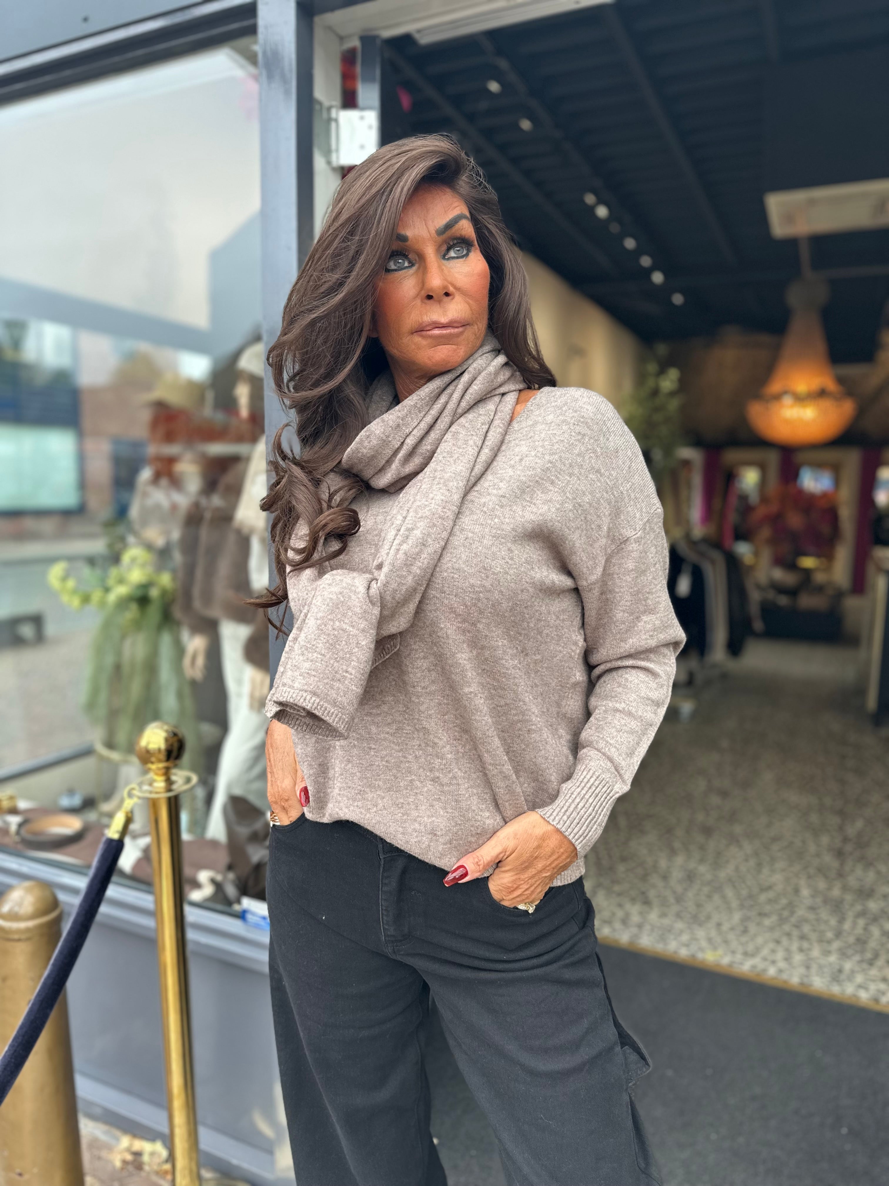 De trui is ideaal voor zowel casual als meer geklede gelegenheden, terwijl de sjaal een extra touch van elegantie toevoegt.