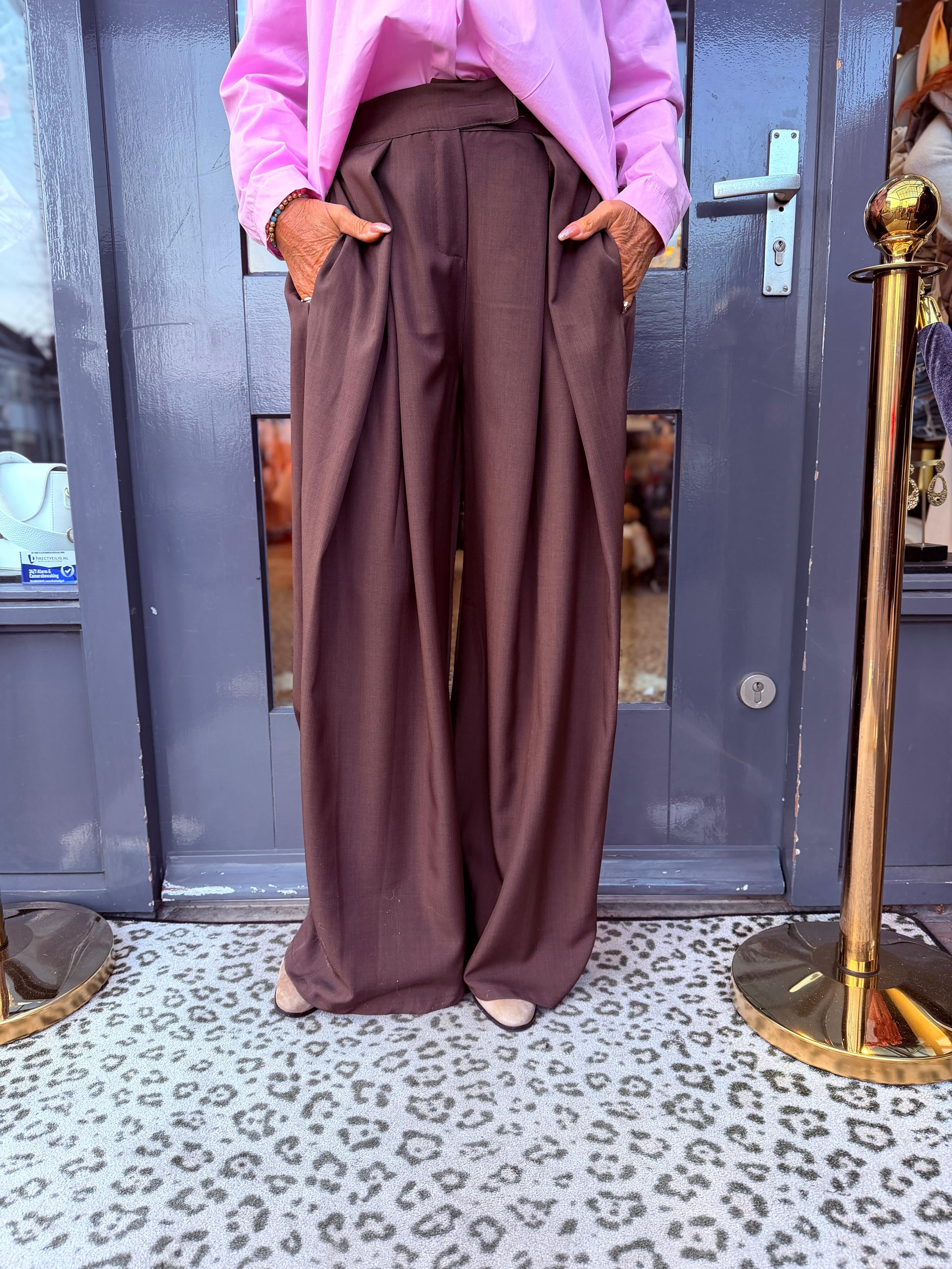Wide leg pantalon “plooien” Donkerbruin